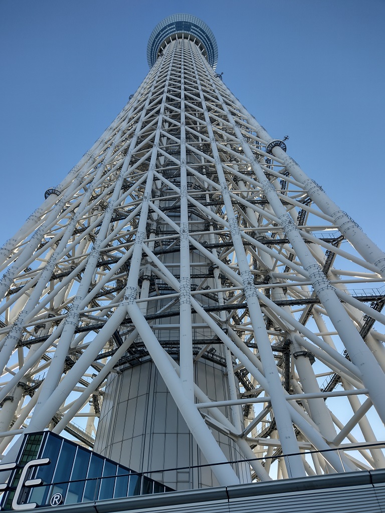 スカイツリーはそこまで太さが変わることなくひたすら長いので、下から見るとなんだか不思議な気持ちになりますね。