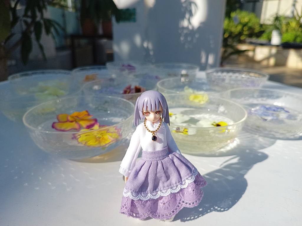 色が似合ってるお花と一緒にミミーガーデンのルゥリアちゃん。