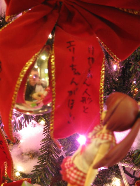 サンタさん横のツリーには、子供たちの欲しいプレゼントの希望が書いてありました。