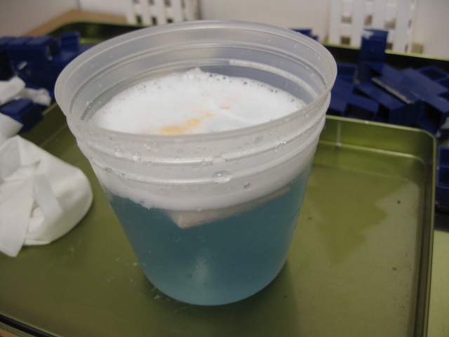 離型剤を落とすために、ある液体にレジンを入れます。