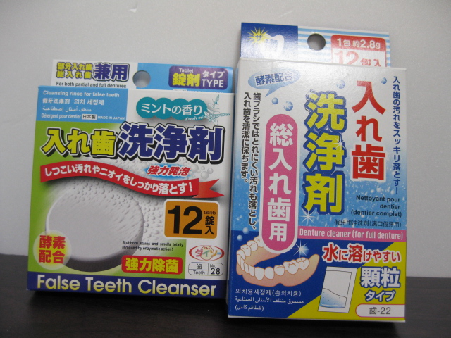入れ歯洗浄剤で離型剤を落とせると言う話を聞いたので、ダイソーで買ってきました。