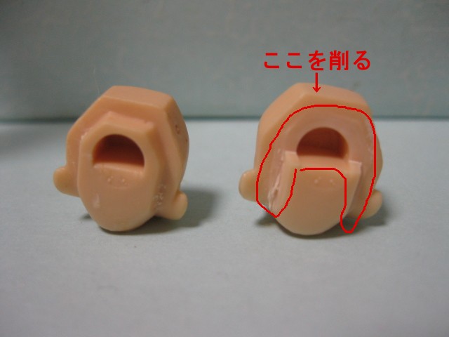 ヘッドの後ろの赤い線で囲った部分を改造するだけではまるようになります。