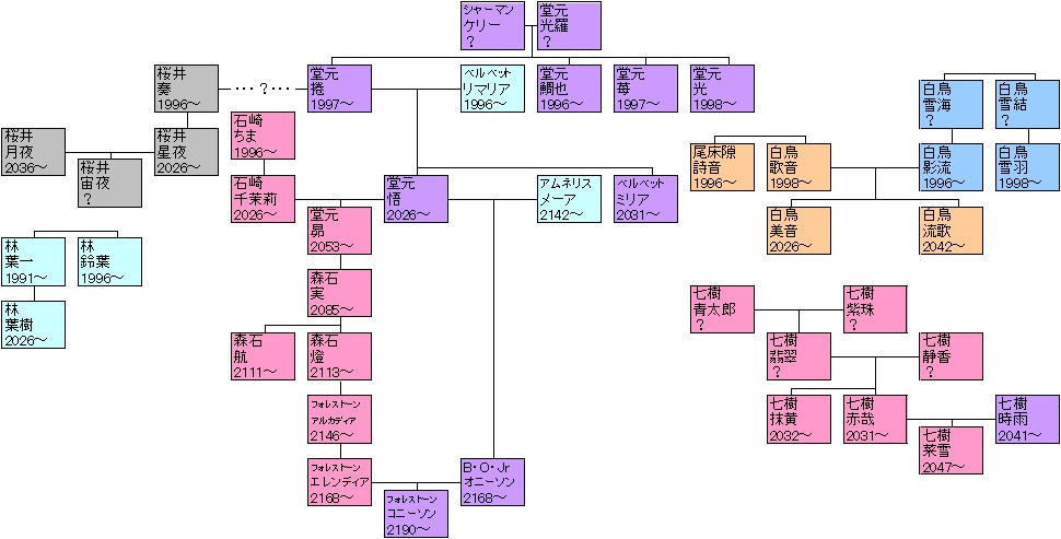 ちのさんとおしゃべりして盛り上がっているうちに、気がついたらドール&神姫小説のキャラクターたちの家系図が完成していました。