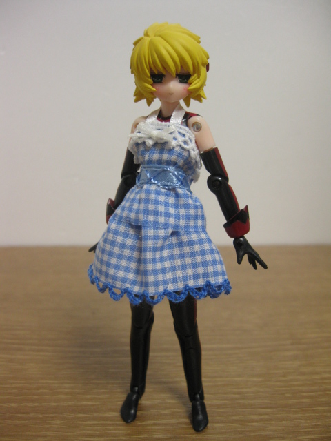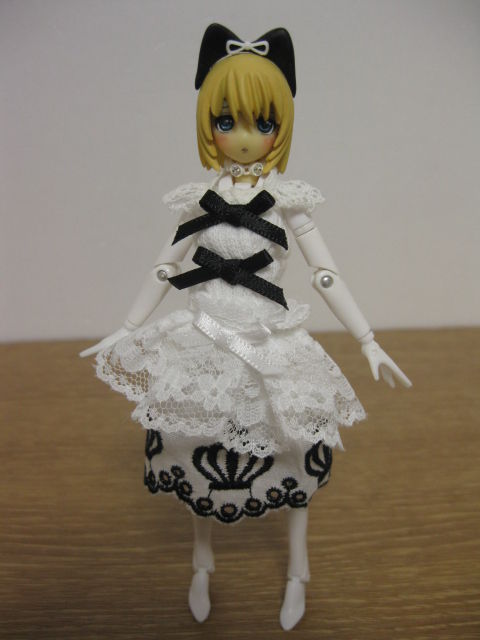 最初はちのさん製のお洋服。トキノさんに送るなら白い服だろうという事で白いドレスです。