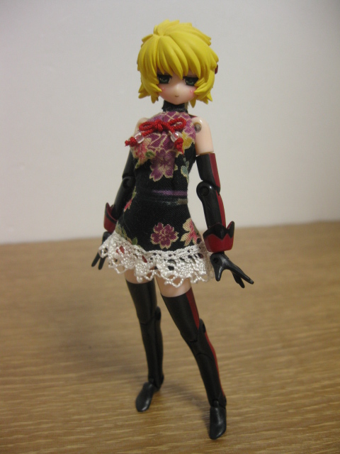 水色チェックのワンピースと、ファネスと色違いの和柄チャイナ風味服です。