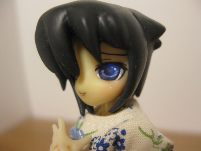 前髪が普通の犬子さん、後頭部がリペイントの犬子さんのものをベースにパテで改造してあります。