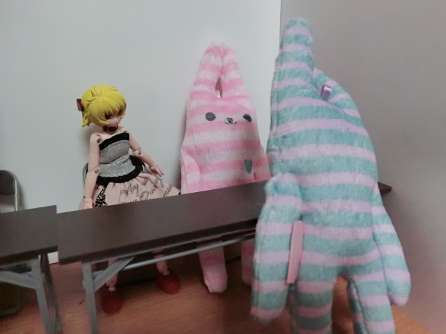 部室の机と椅子、うさぎのぬいぐるみは好評のようで私も嬉しいです。