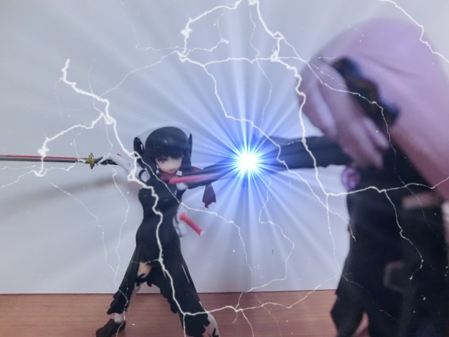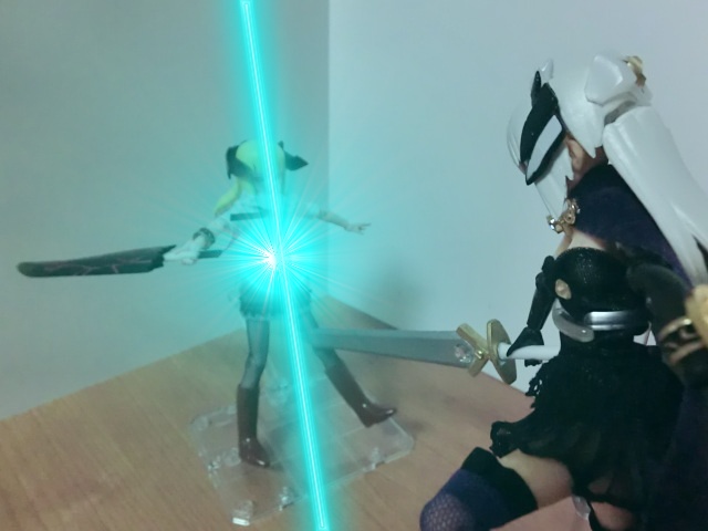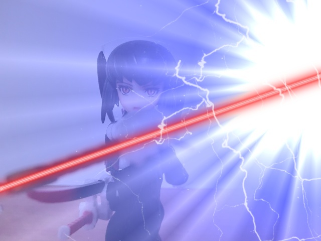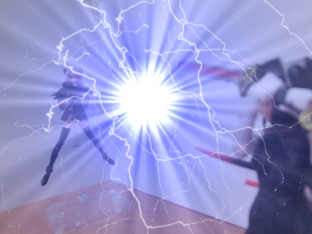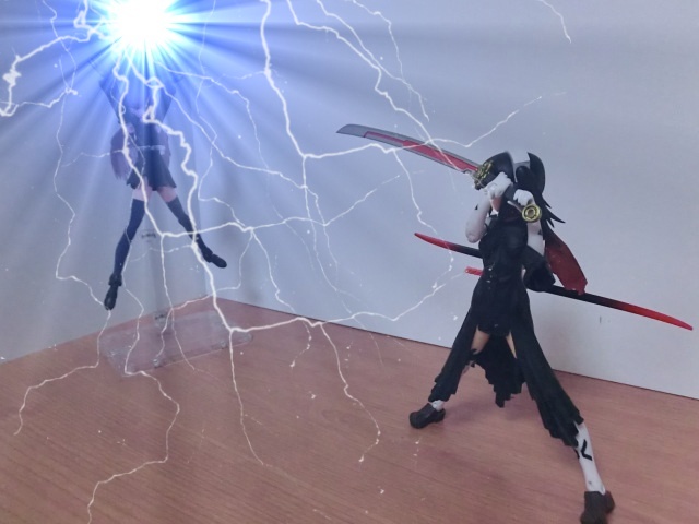 電撃ごとモナルダさんを斬る赤の一撃と魔王の闇の力に打ち勝つ白の一撃。