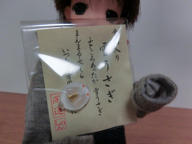 時兎君が持っているのは近所の文具店で購入した硝子のうさぎのマスコット…というかお守りです。